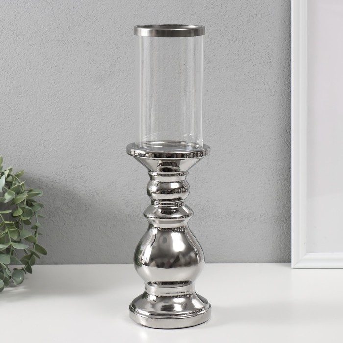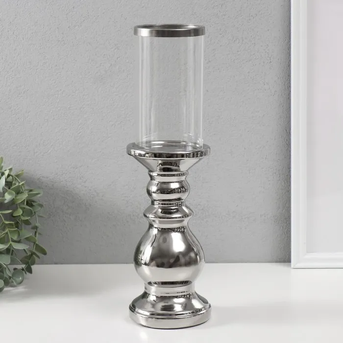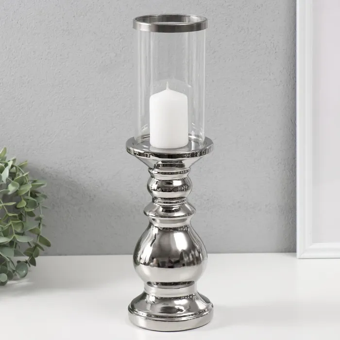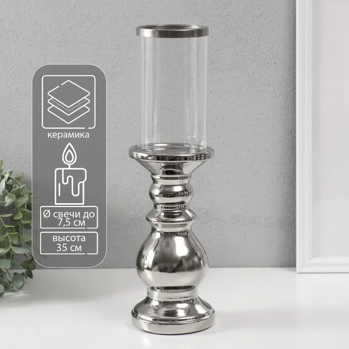 Подсвечник на 1 свечу «Алберо», керамика, стекло, d=7.5 см, серебро, 9.5×9.5×35 см — Характеристики