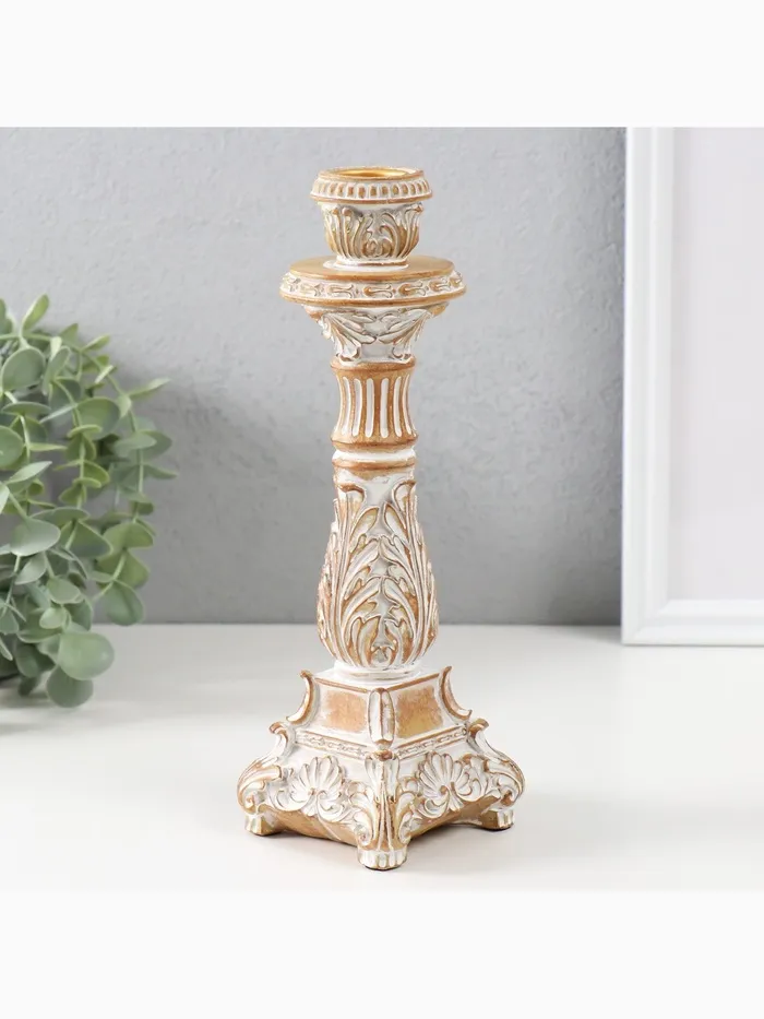 Подсвечник на 1 свечу «Амфитея», полистоун, песочная с патиной, 7.8×7.8×23.5 см — Характеристики