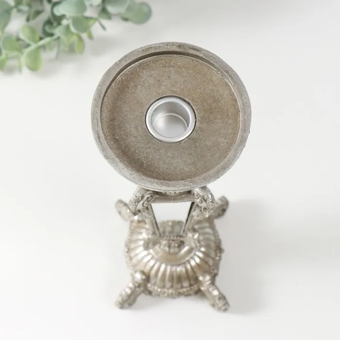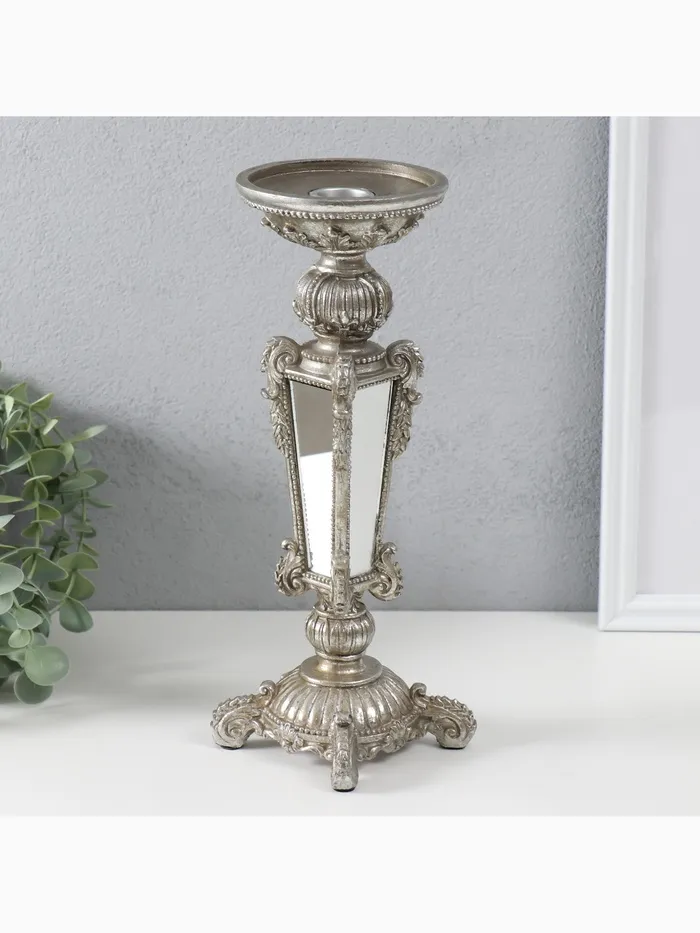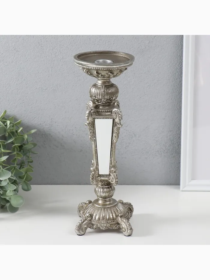 Подсвечник на 1 свечу «Ампир», полистоун, серебро с зеркалом, 9.3×9.3×27.3 см — Характеристики