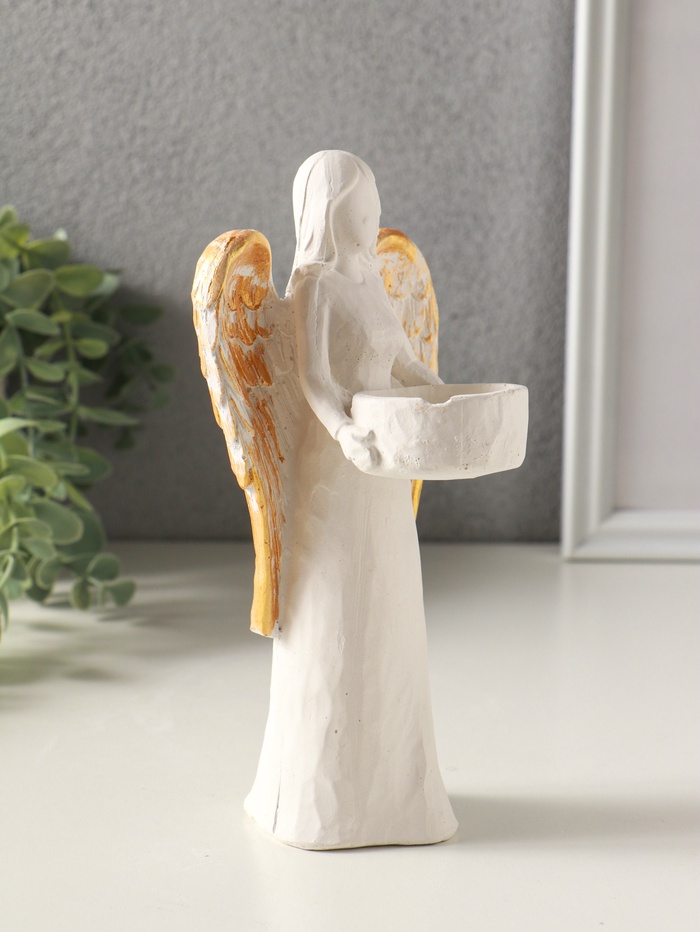 Этот белый гипсовый подсвечник для одной свечи станет элегантным акцентом в интерьере и создаст особое настроение. Его классическая форма и универсальная тематика делают его уместным в любой сезон — от романтического февраля до светлой Пасхи. Ангельский силуэт привносит в пространство ощущение спокойствия и чистоты.