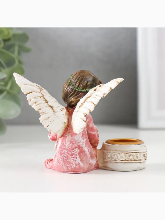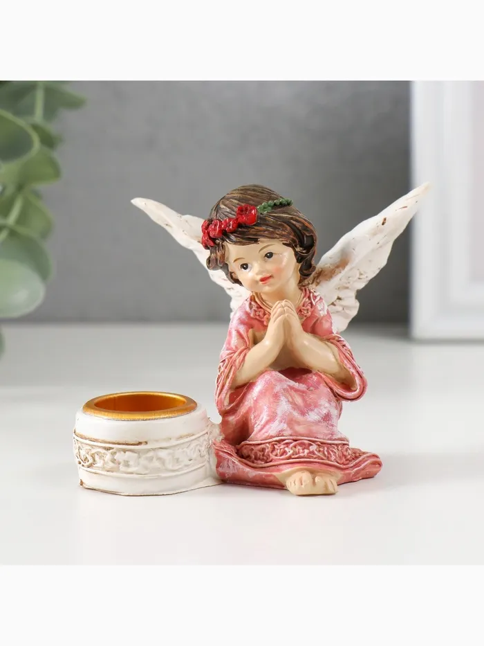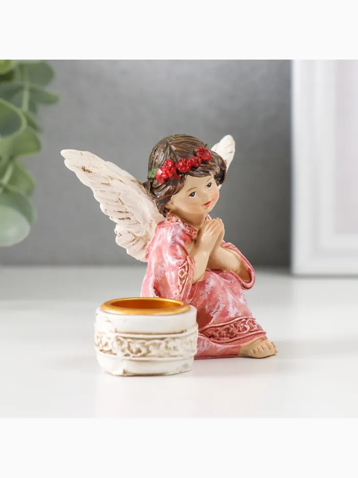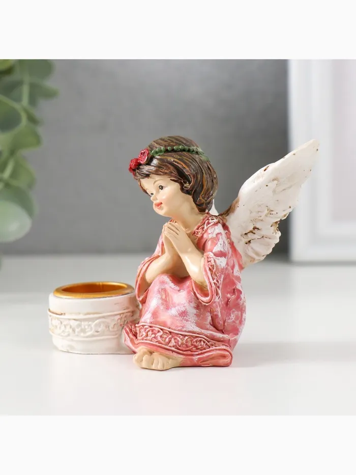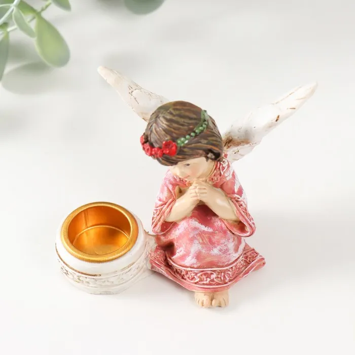 Подсвечник на 1 свечу «Ангел в платье с венком», полистоун, d-2.2 см, 7.2×8.7×5.5 см, МИКС — Характеристики