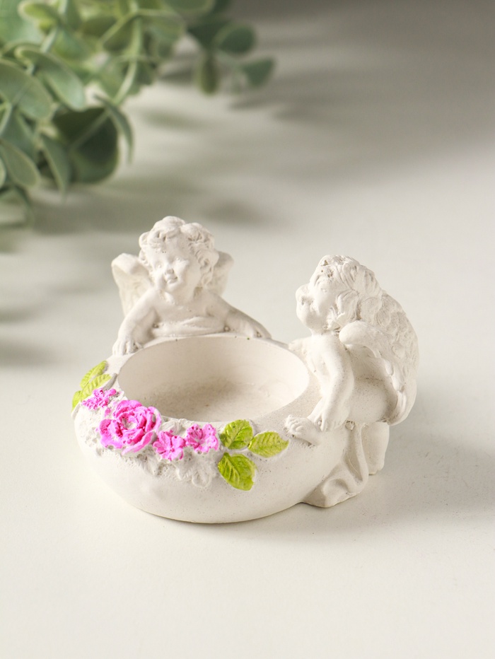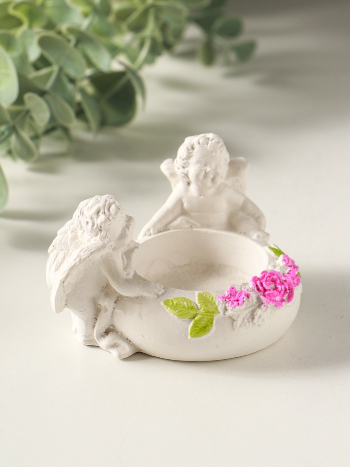 Этот белый подсвечник с ангелами — элегантный акцент для тихого вечера или особого праздника. Ручная роспись цветами придаёт изделию из гипса лёгкость и индивидуальность, создавая в комнате мягкое, умиротворённое настроение. Он станет тёплым подарком на День влюблённых или Пасху, а также универсальным украшением интерьера в романтичном или классическом стиле.