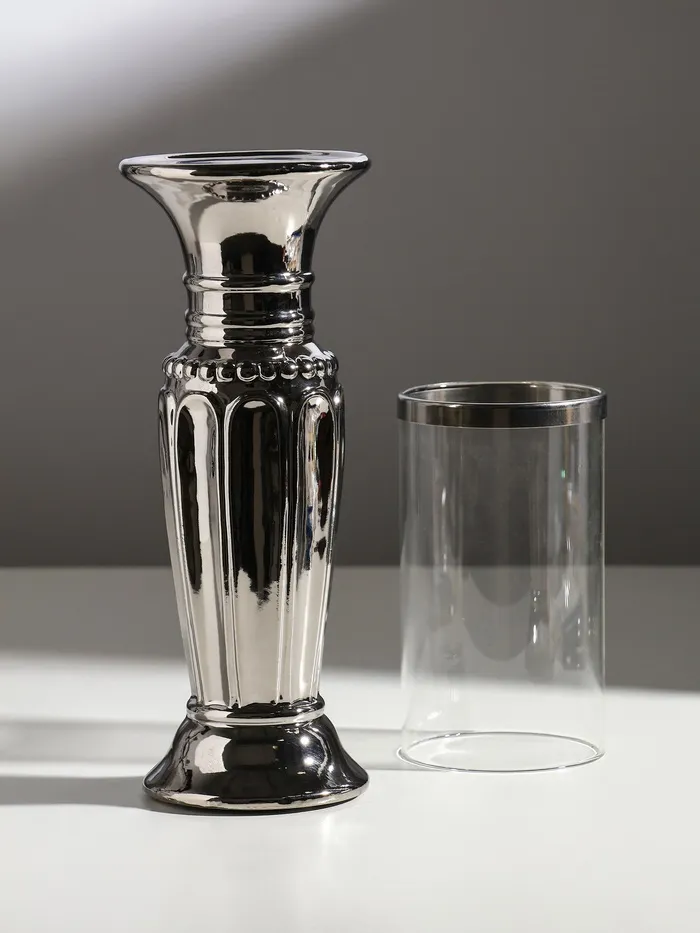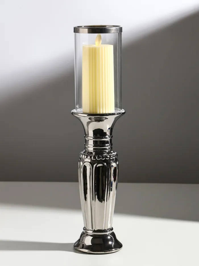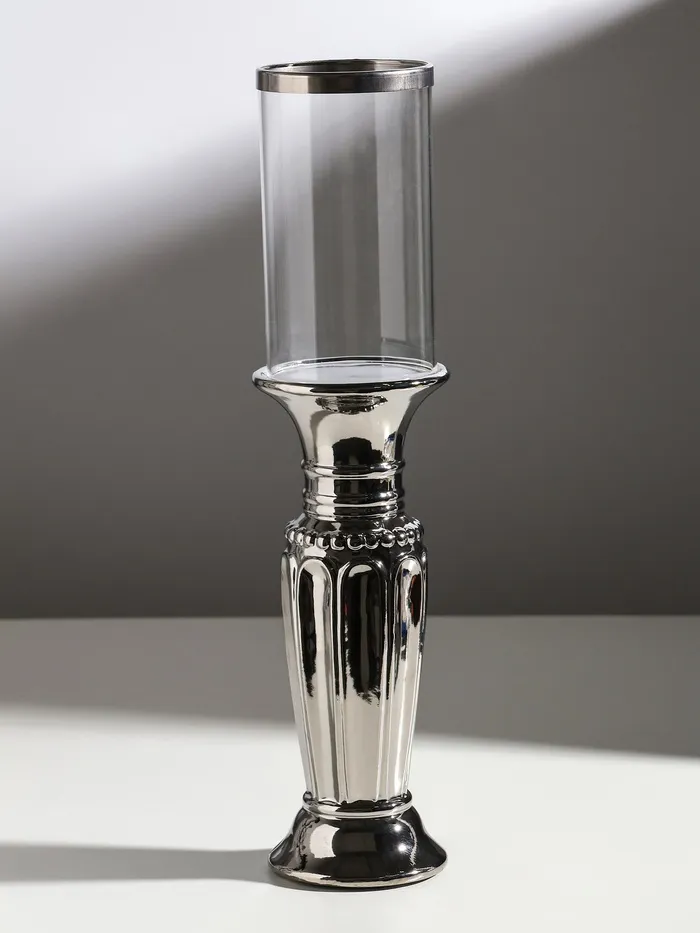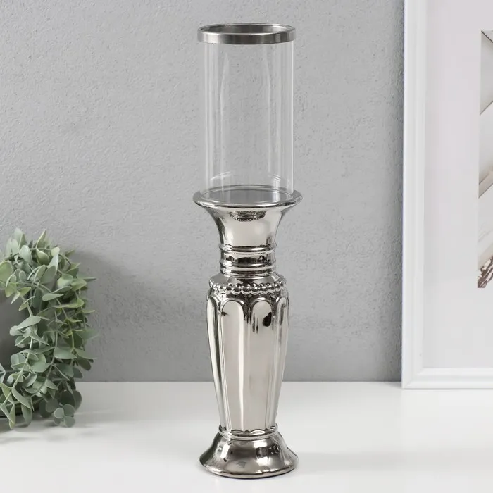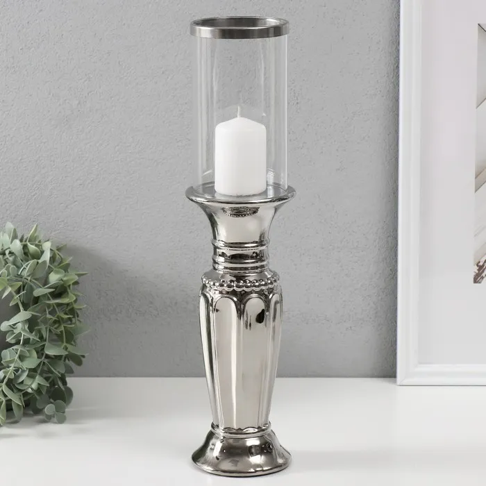 Подсвечник на 1 свечу «Арте», керамика, стекло, d=7.5 см, серебро, 9×9×37.5 см — Характеристики