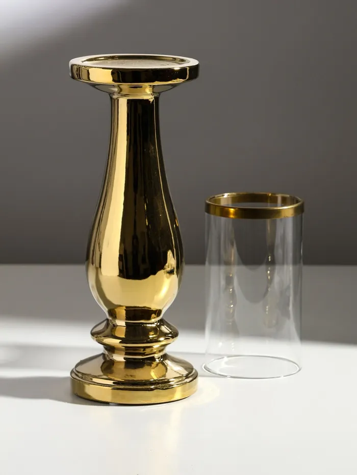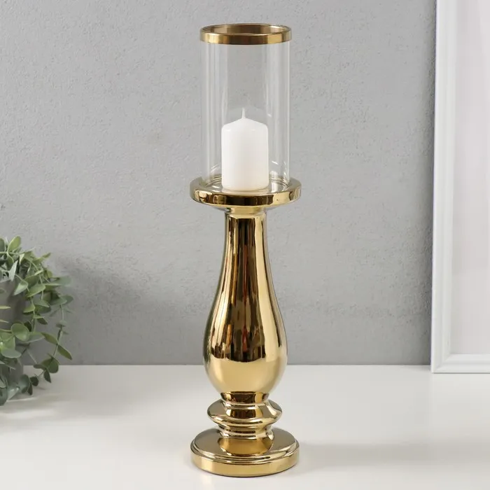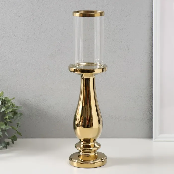 Подсвечник на 1 свечу «Аванти», керамика, стекло, d=8 см, золото, 10×10×40.5 см — Характеристики
