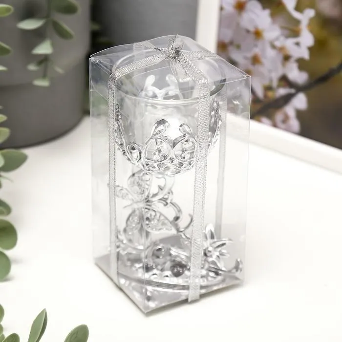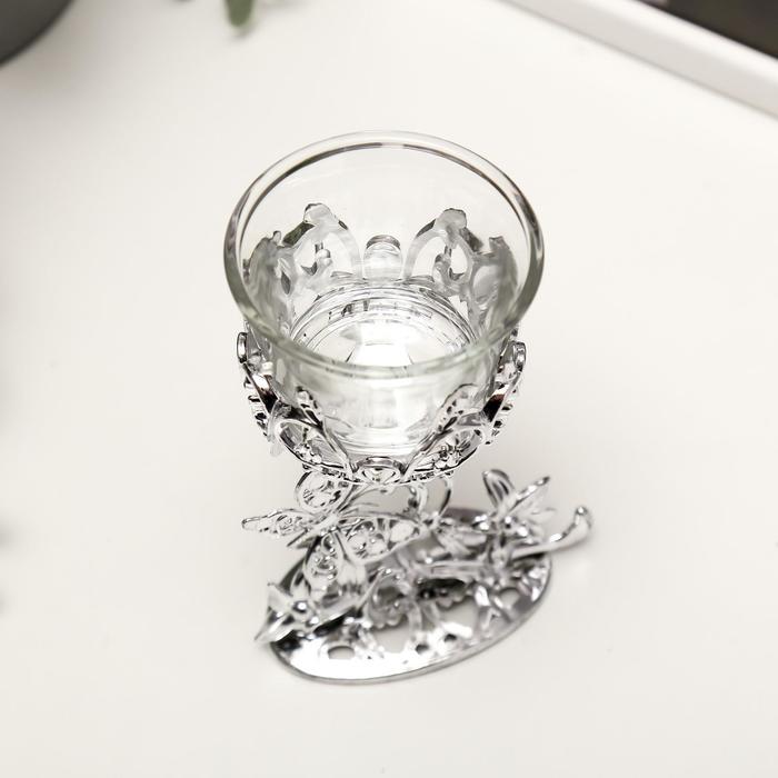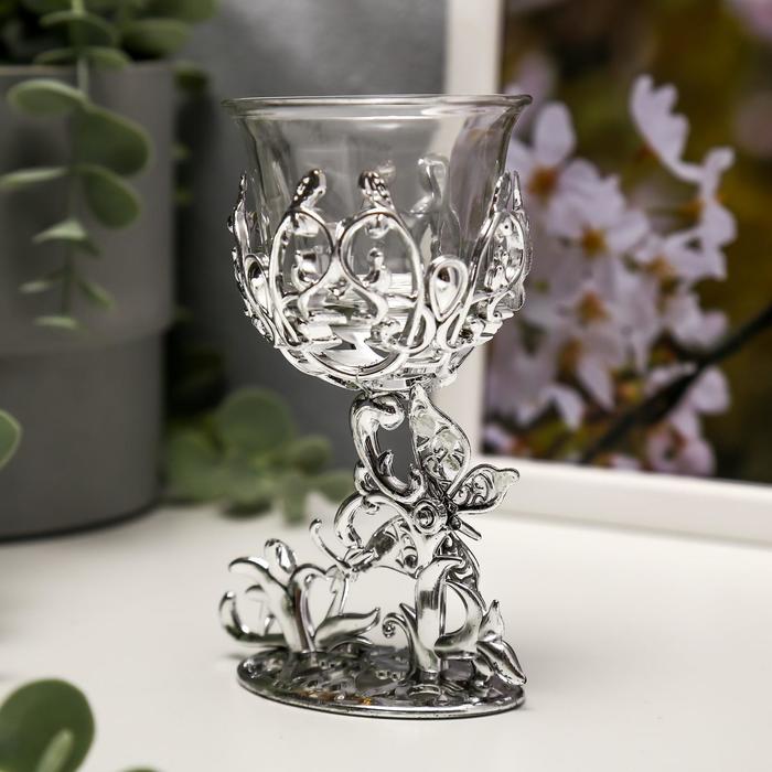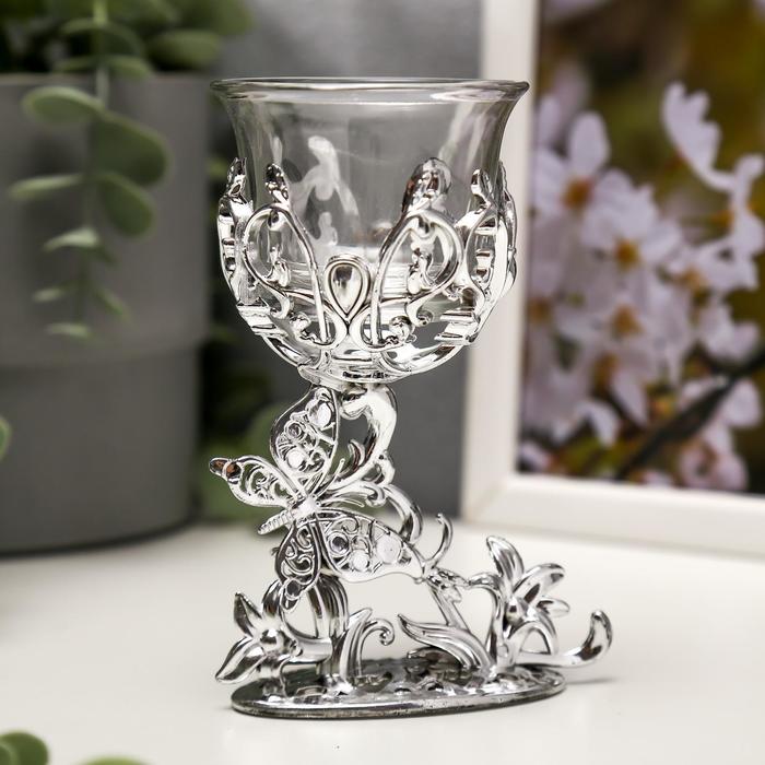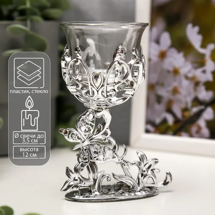 Подсвечник на 1 свечу «Бабочка», пластик, стекло, серебро, 12×7.5×6 см — Характеристики