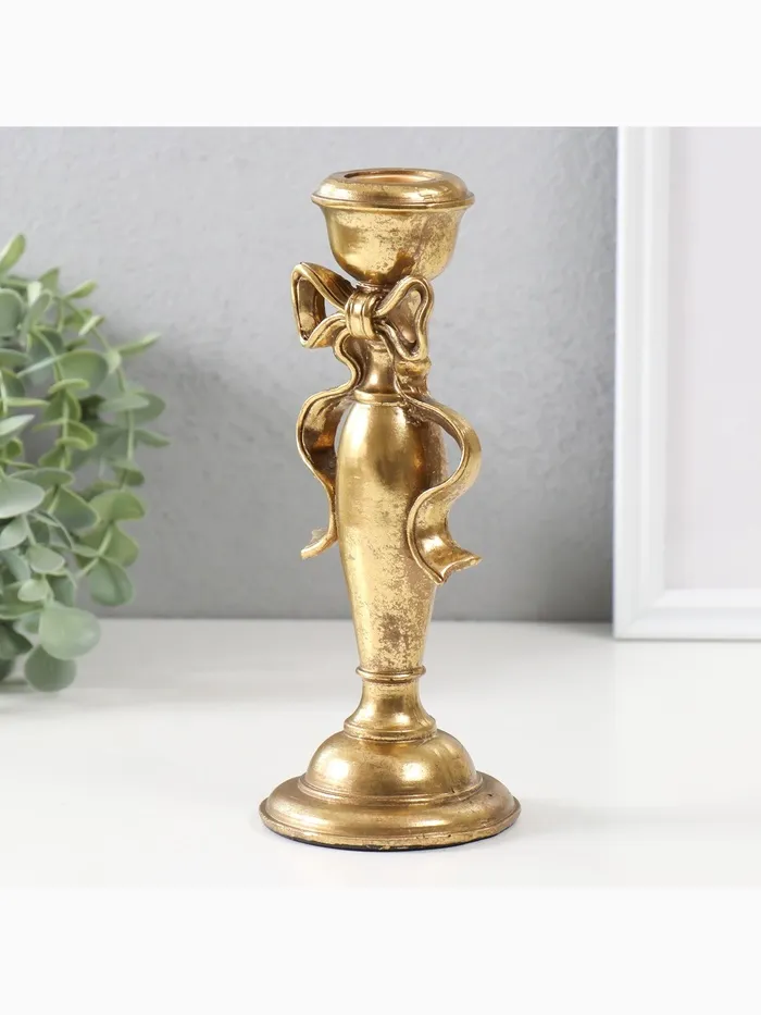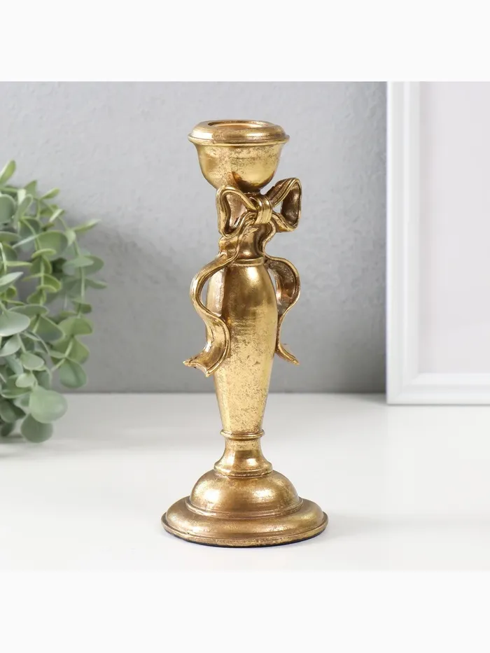 Подсвечник на 1 свечу «Бант», полистоун, золото, 8.3×8.3×20.8 см — Характеристики