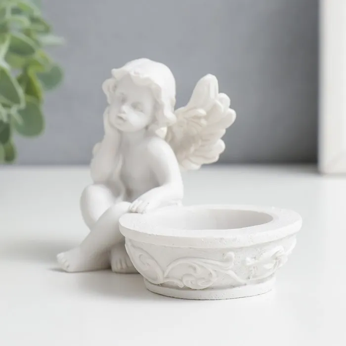 Подсвечник на 1 свечу «Белоснежный ангел в раздумьях», полистоун, 7.5×9.8×6 см — Характеристики