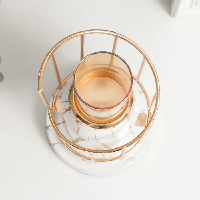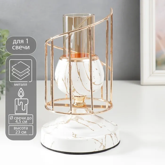 Подсвечник на 1 свечу «Белый мрамор с золотыми трещинками. Лестница», 23×13×13 см — Характеристики