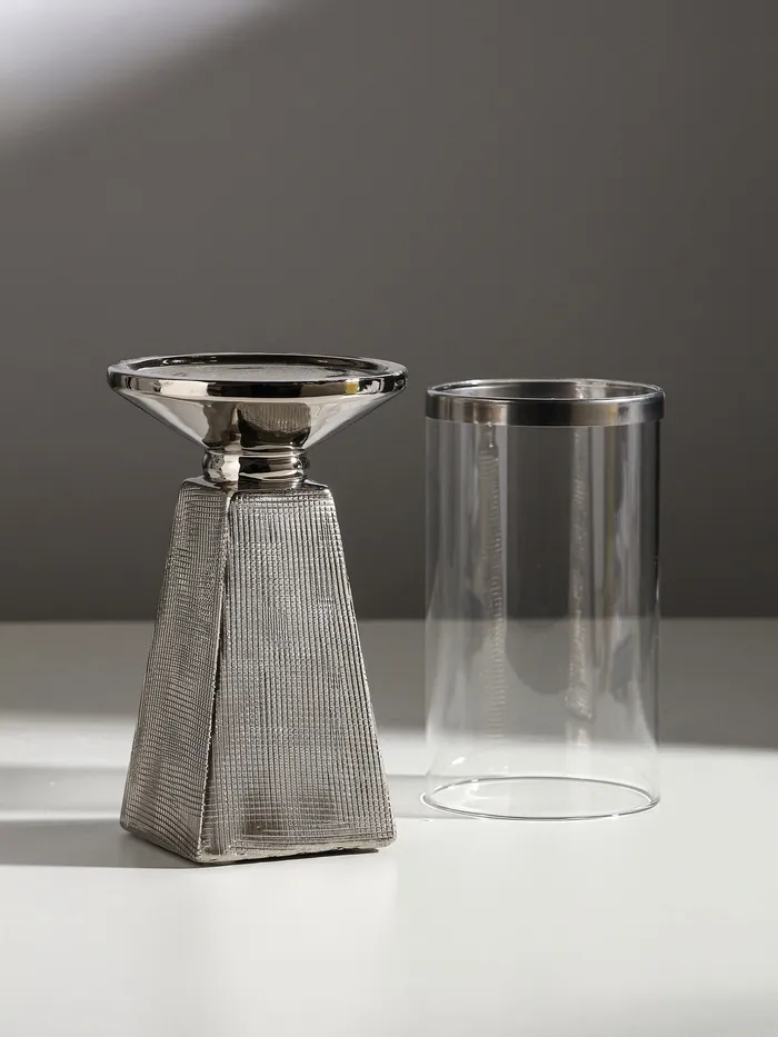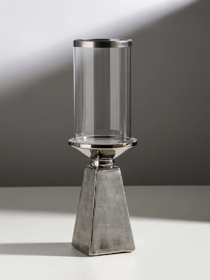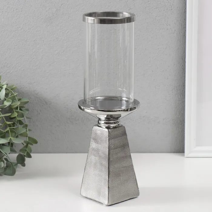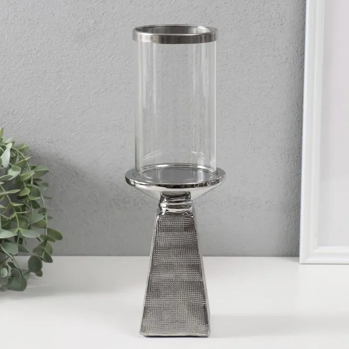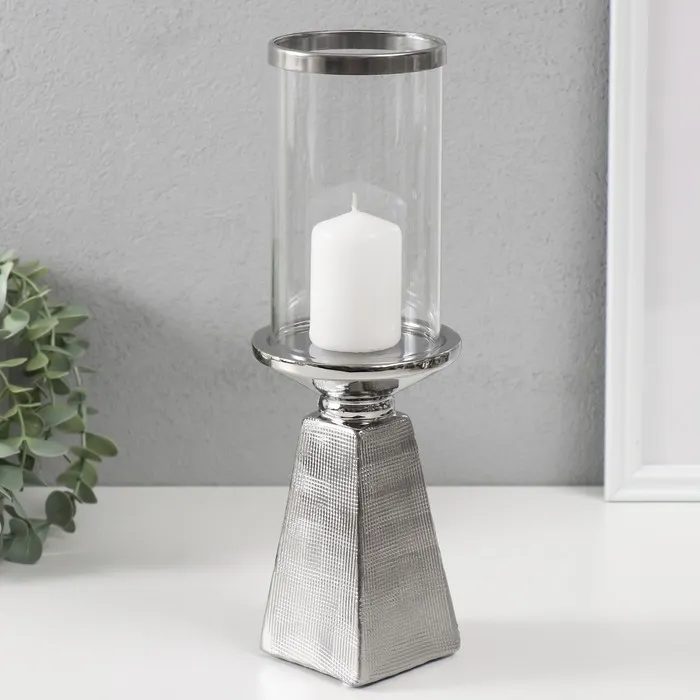 Подсвечник на 1 свечу «Буэно», керамика, стекло, d=7.5 см, серебро, 9.5×9.5×29.5 см — Характеристики
