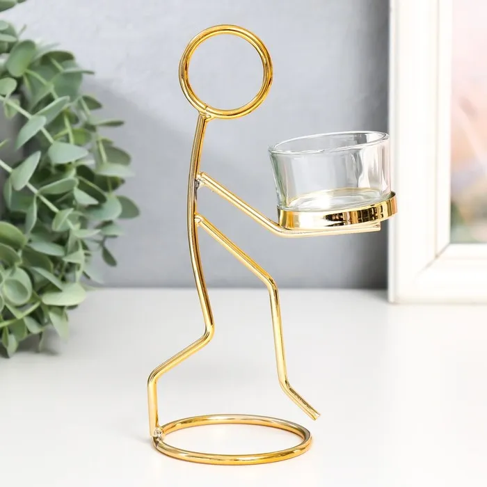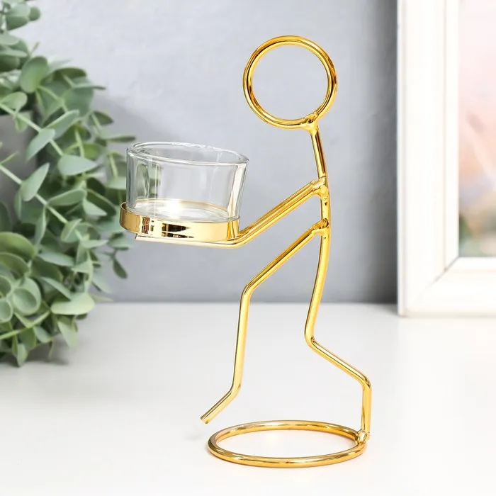 Подсвечник на 1 свечу «Человечек», металл, стекло, d=4.5 см золото, 7.5×7.5×18.5 см — Характеристики