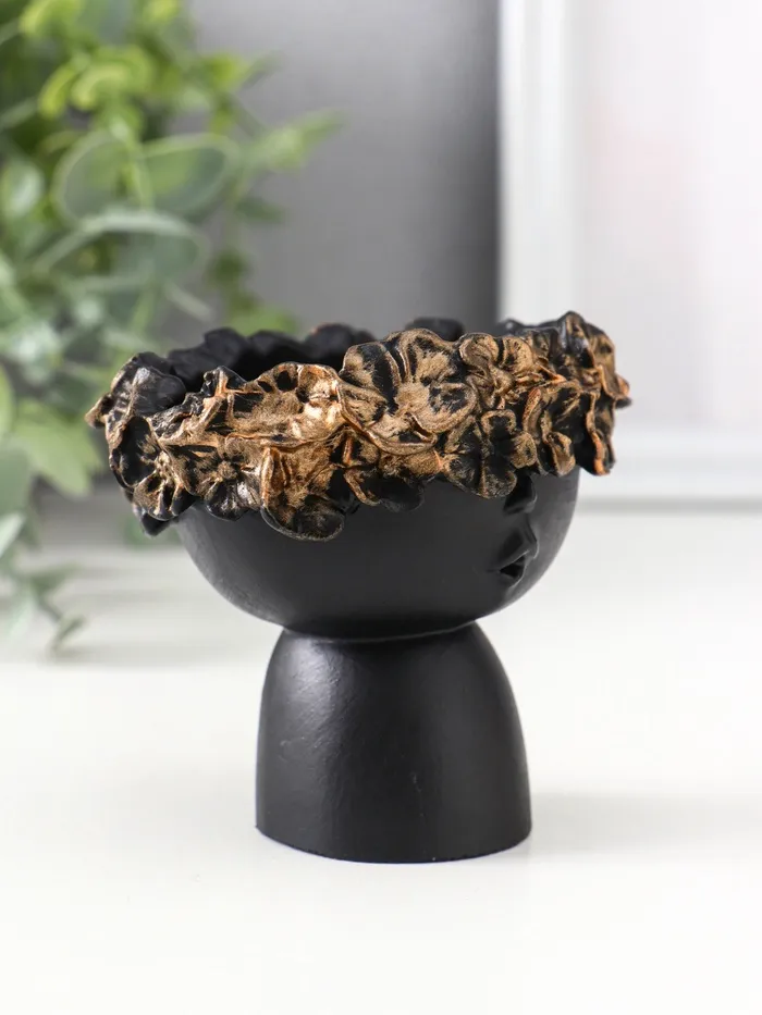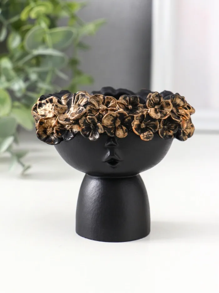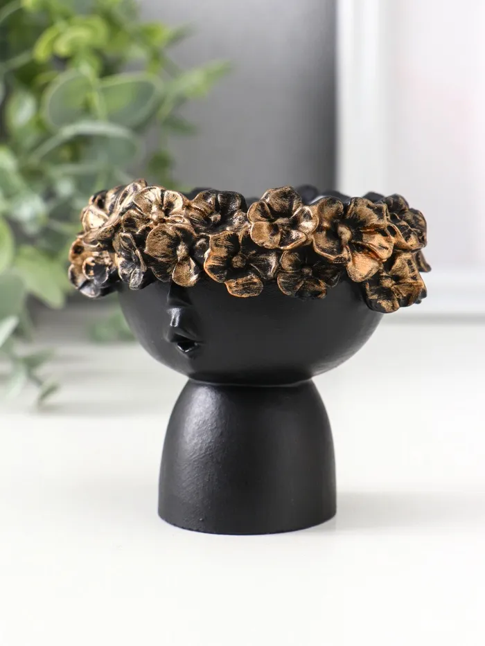 Этот чёрный подсвечник с одной свечой станет универсальным украшением вашего интерьера. Миниатюрная скульптура девочки в венке создаёт атмосферу спокойствия и уюта, превращая обычный вечер в небольшой ритуал. Лаконичная форма и глубокий цвет делают его самодостаточным акцентом на полке или обеденном столе.