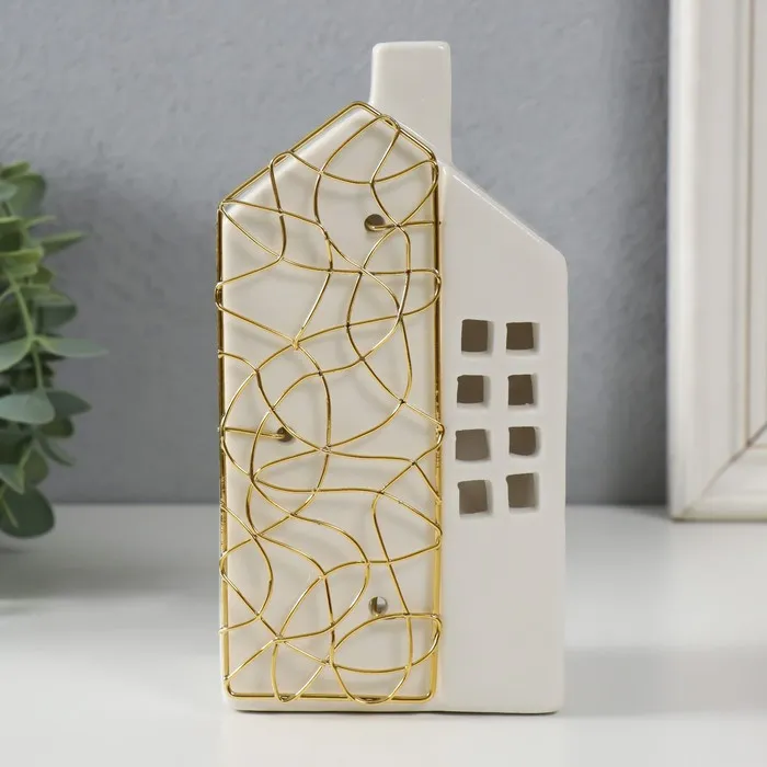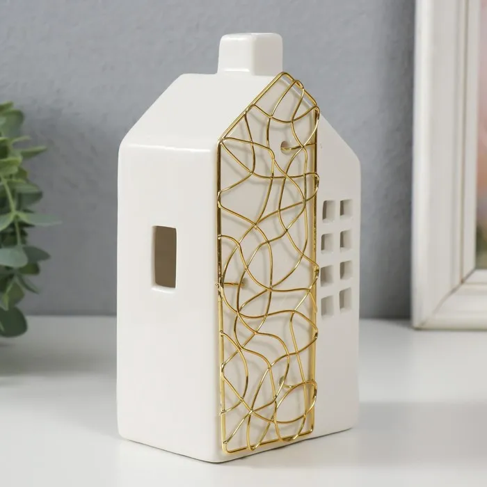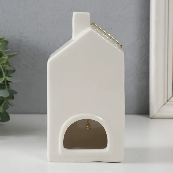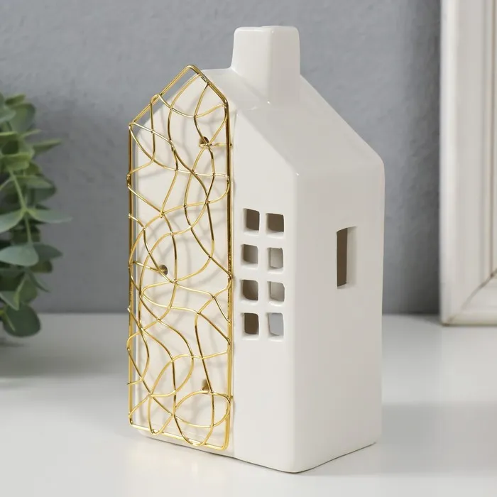 Подсвечник на 1 свечу «Дом», керамика, металл, белый с золотом, 9×6.3×16.7 см — Характеристики