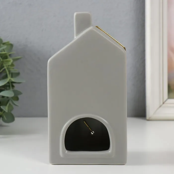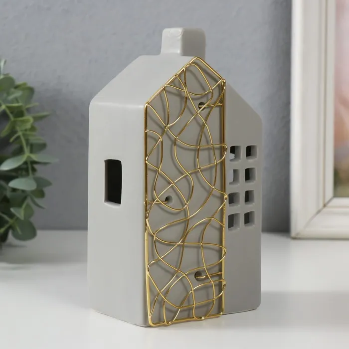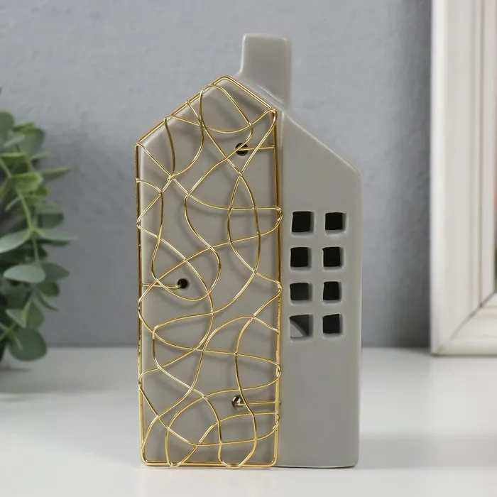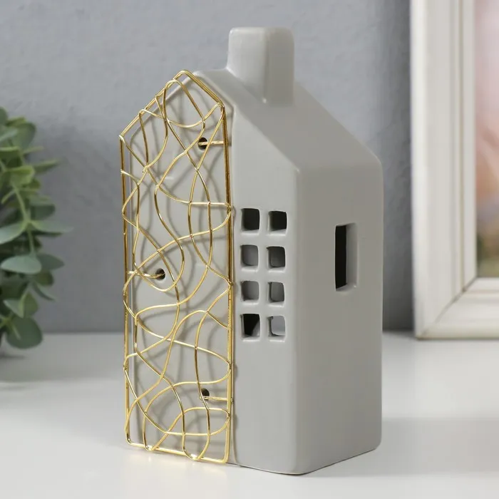 Подсвечник на 1 свечу «Дом», керамика, металл, серый с золотом, 9×6.3×16.7 см — Характеристики