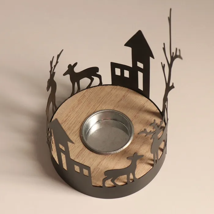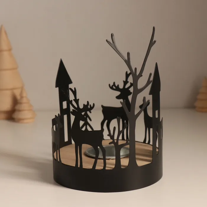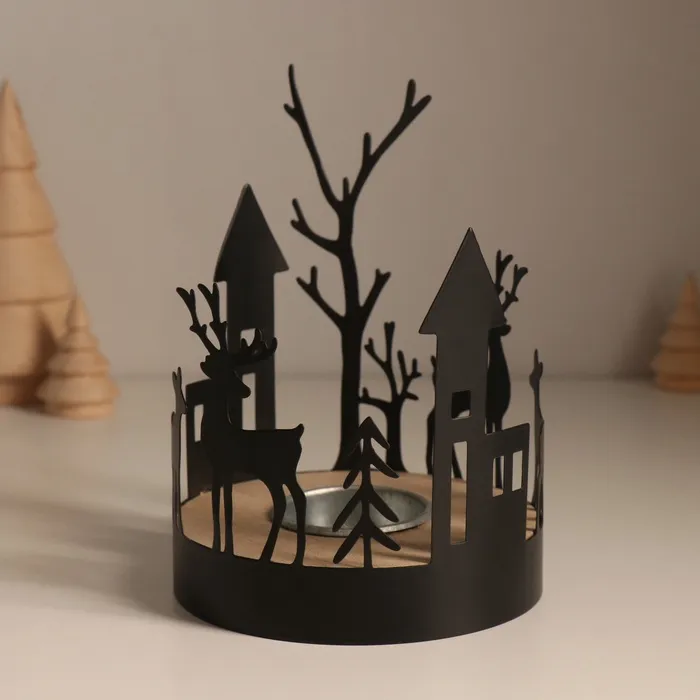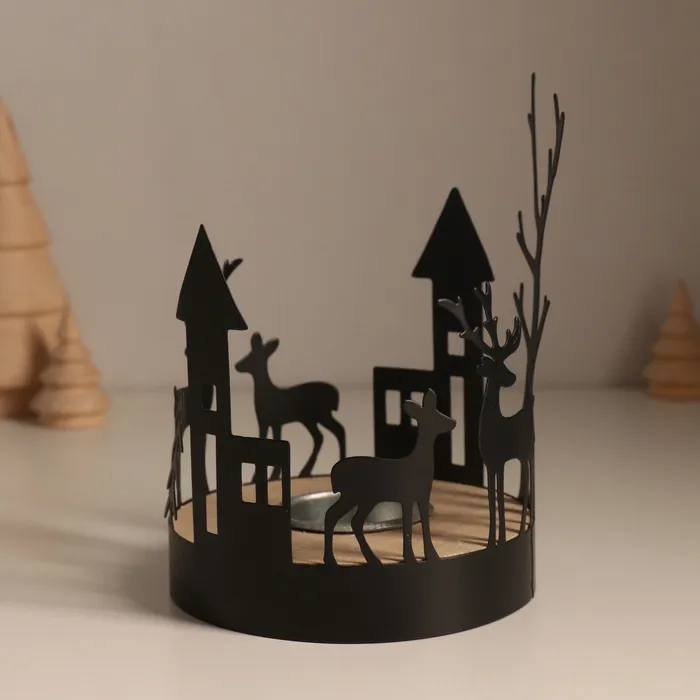 Подсвечник на 1 свечу «Домики и олени», d=4 см, металл, дерево, 10×10×13.8 см — Характеристики
