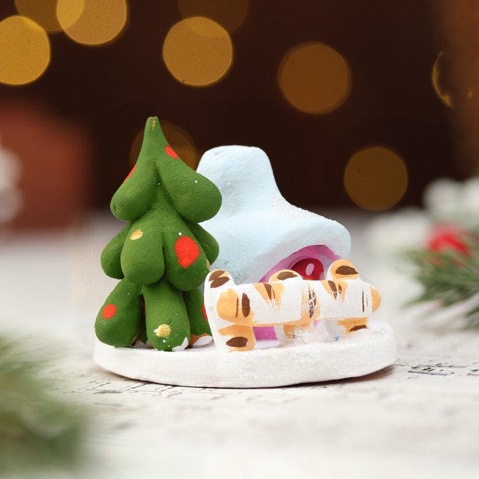 Подсвечник на 1 свечу «Фигурка: Новогодняя избушка», ковровская игрушка, керамика