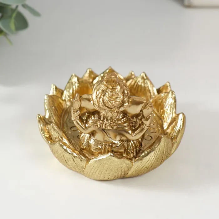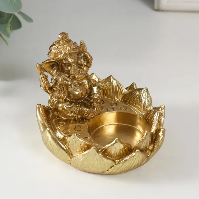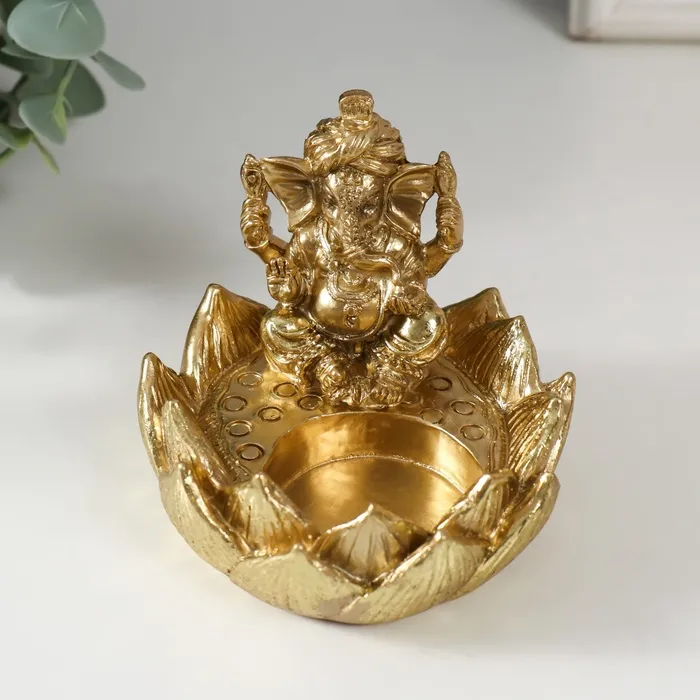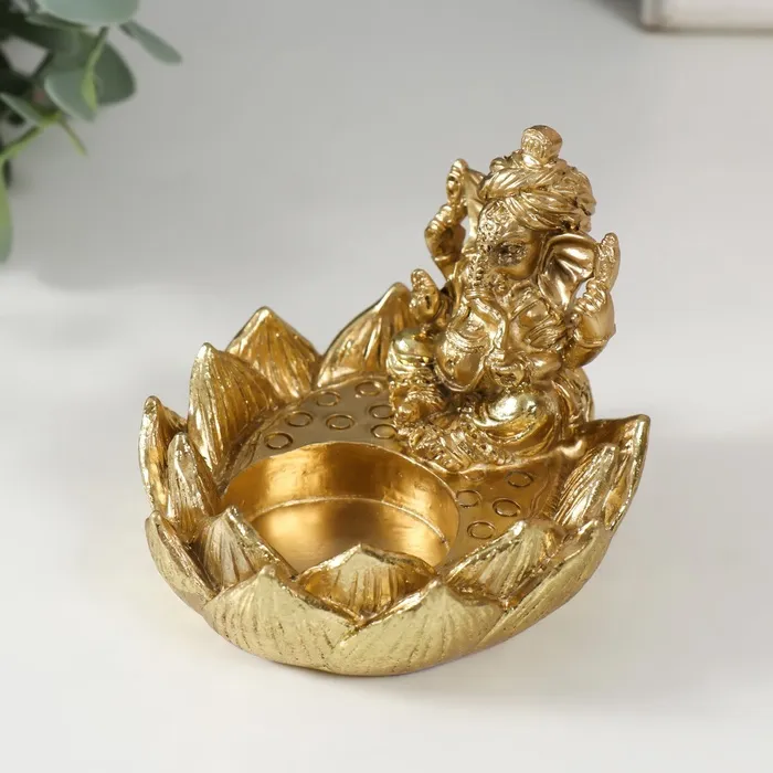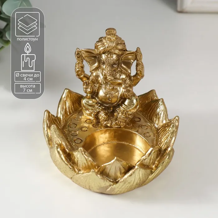 Подсвечник на 1 свечу «Ганеша в лотосе», полистоун, золото, 9×8.2×7 см — Характеристики