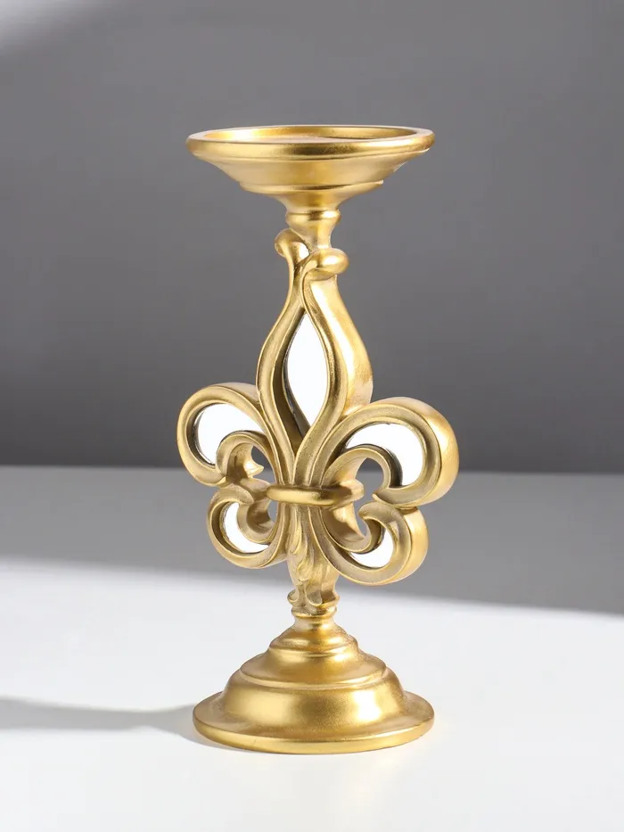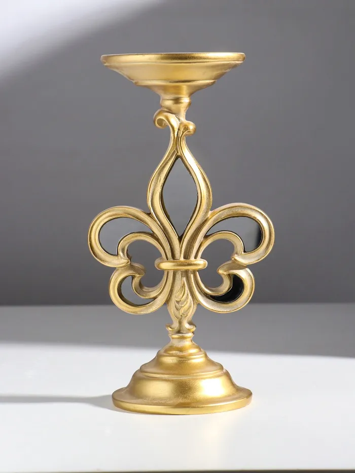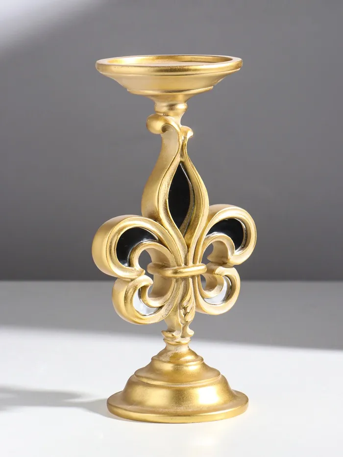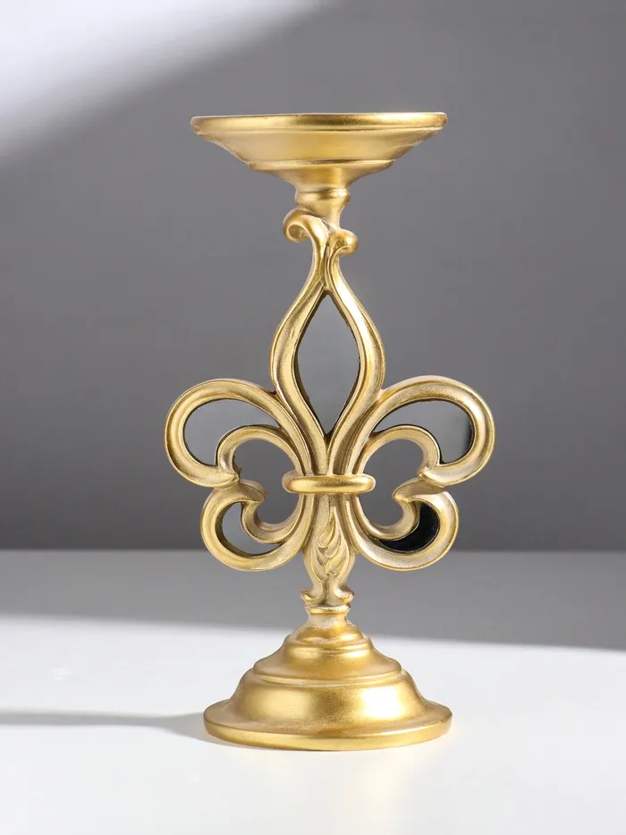 Подсвечник на 1 свечу «Геральдическая лилия», полистоун, зеркало, золото, 9×9×23 см — Характеристики