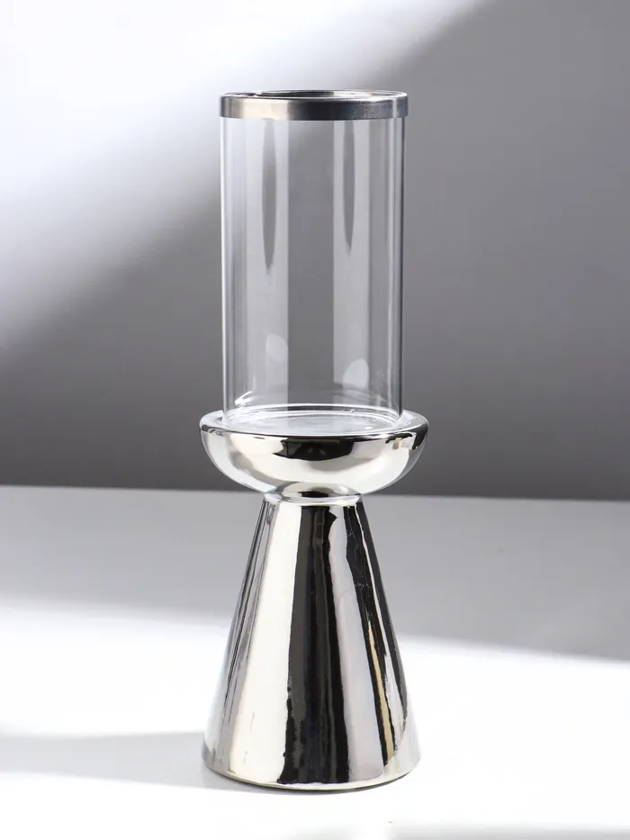 Подсвечник на 1 свечу «Гладь», керамика, стекло, d=8 см, серебро, 10×10×29.5 см — Характеристики