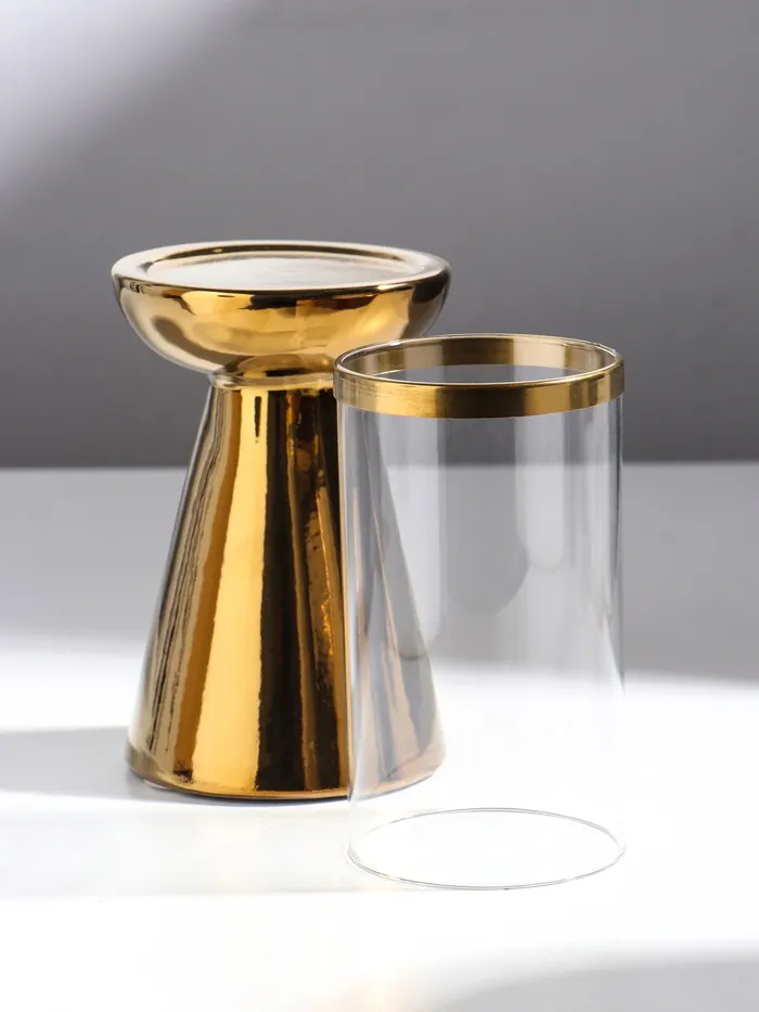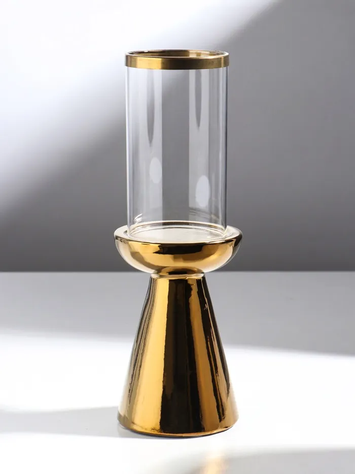 Подсвечник на 1 свечу «Гладь», керамика, стекло, d=8 см, золото, 10×10×29.5 см — Характеристики