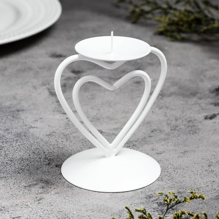 Подсвечник на 1 свечу «Гламур», металл, 9×10.2 см, белый — Характеристики
