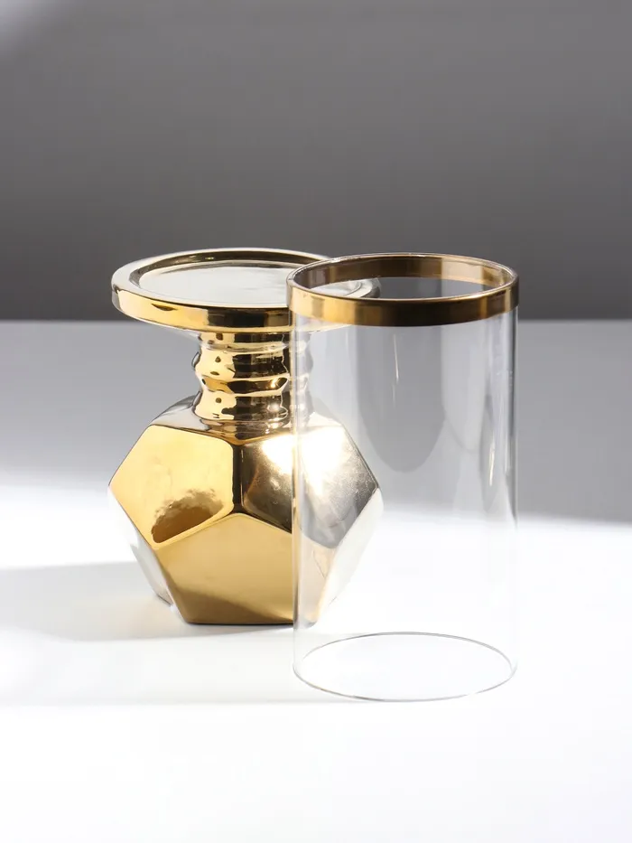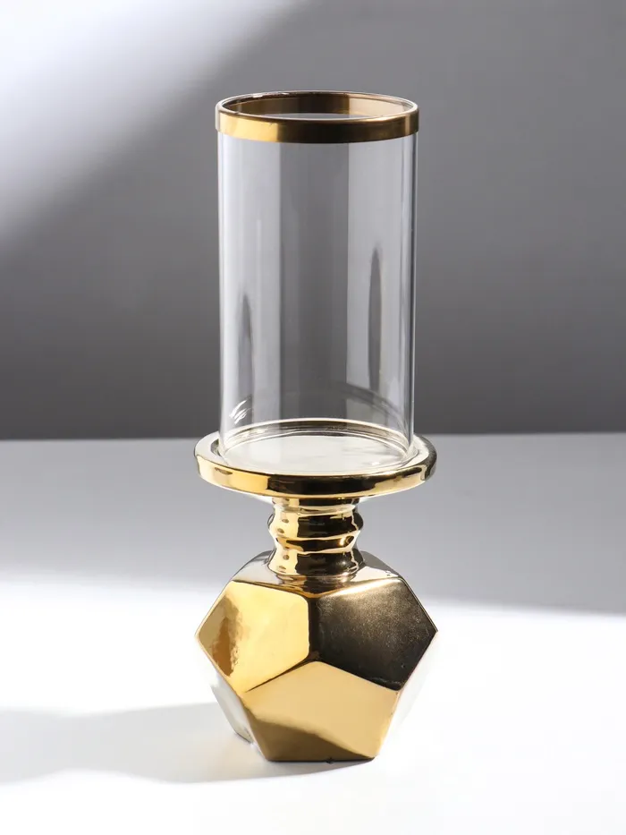 Подсвечник на 1 свечу «Грани», керамика, стекло, d=7.5 см, золото, 10.5×10.5×27 см — Характеристики