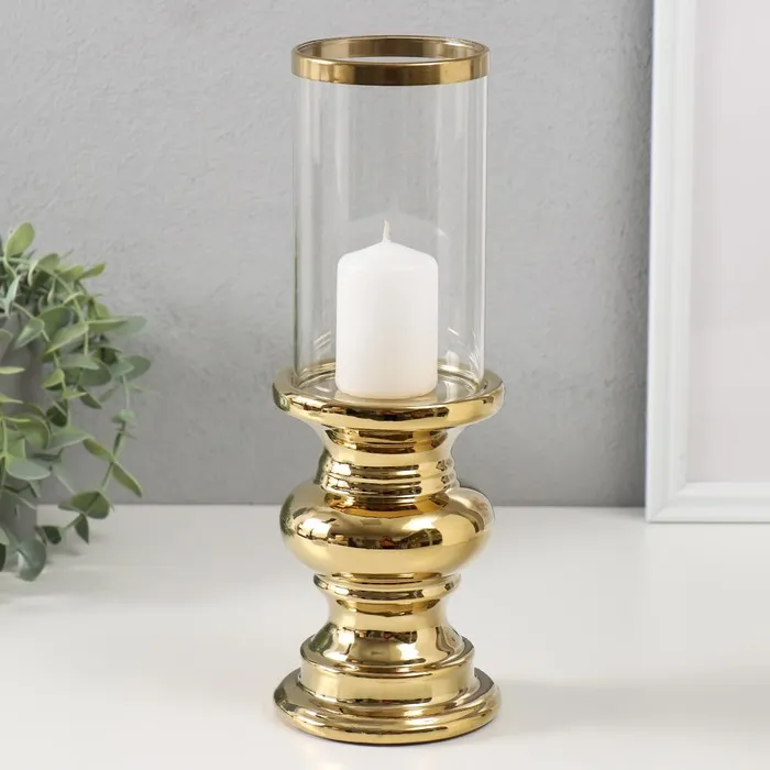 Подсвечник на 1 свечу «Грация», керамика, стекло, d=7.5 см, золото, 10×10×28.5 см — Характеристики