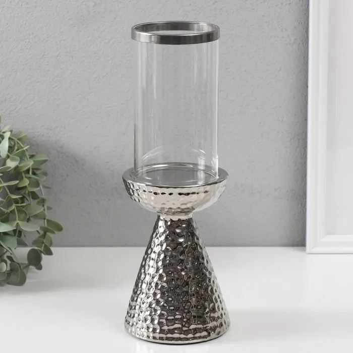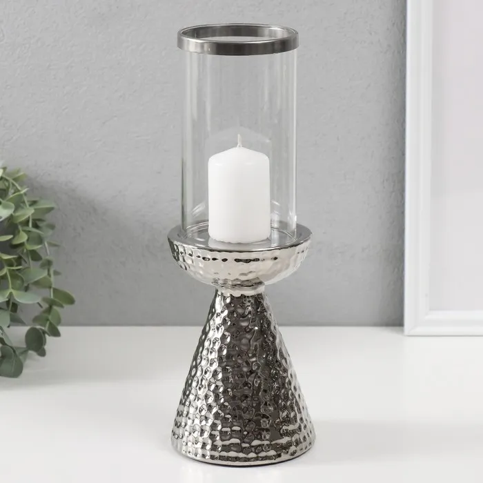 Подсвечник на 1 свечу «Ибис», керамика, стекло, d=7.5 см, серебро, 10.5×10.5×29.5 см — Характеристики