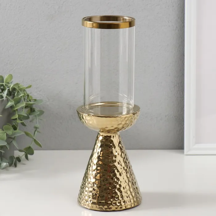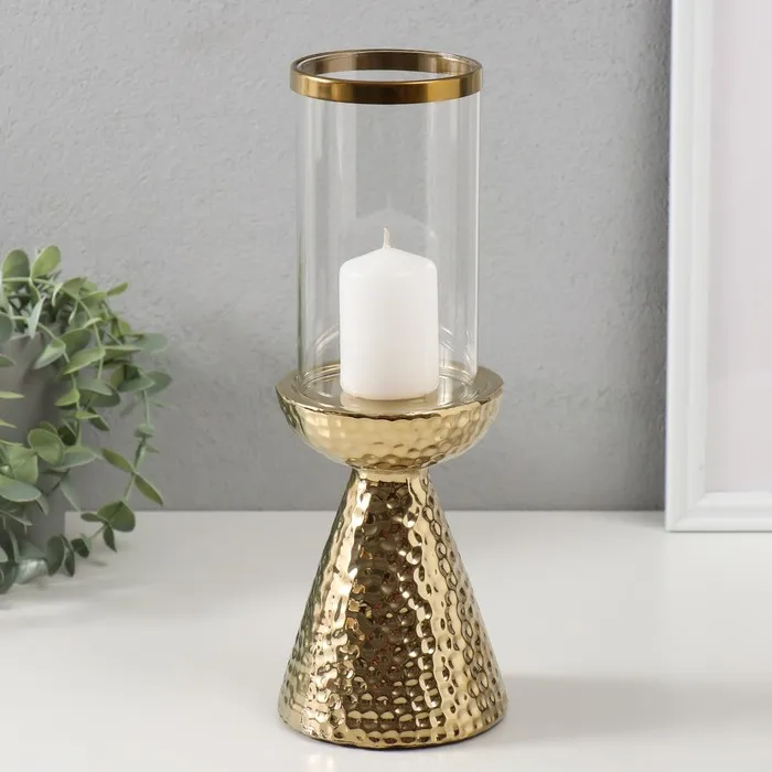 Подсвечник на 1 свечу «Ибис», керамика, стекло, d=7.5 см, золото, 10.5×10.5×29.5 см — Характеристики