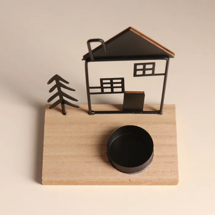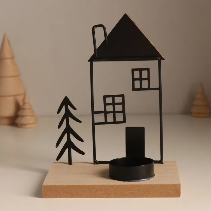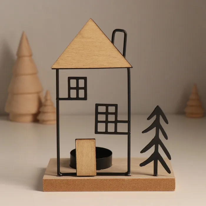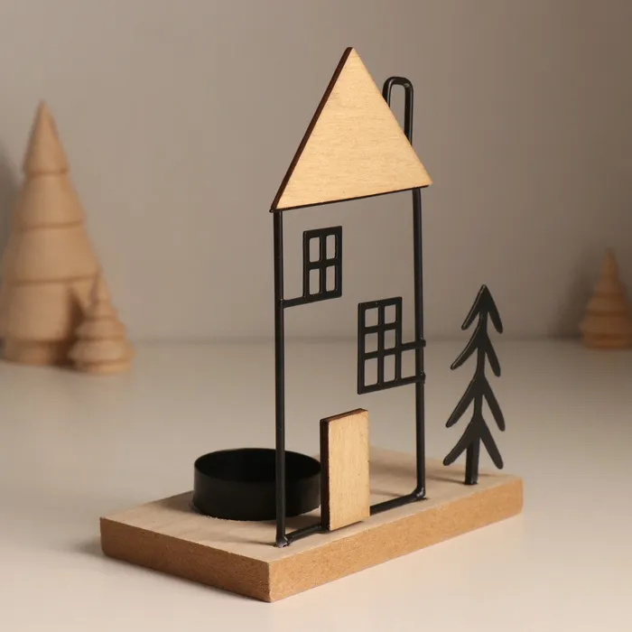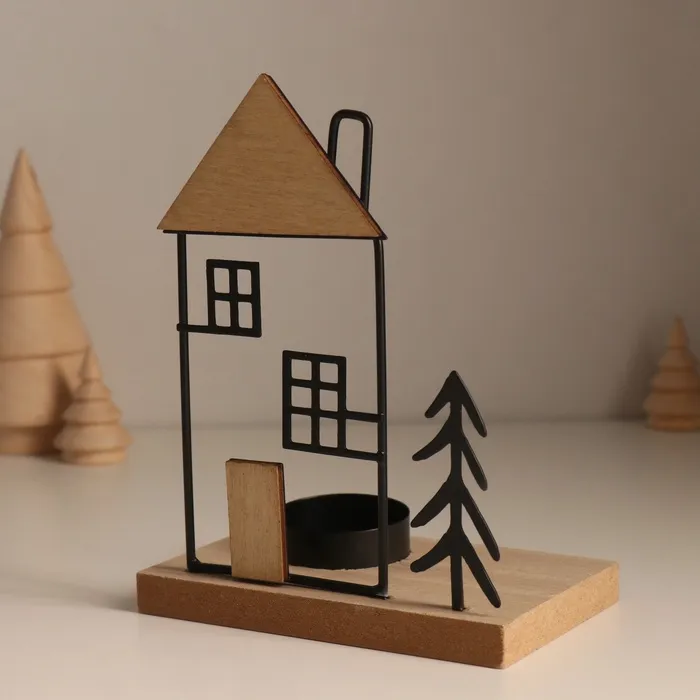 Подсвечник на 1 свечу «Ёлочка у домика», d=4 см, металл, дерево, 7.5×12×15.5 см — Характеристики