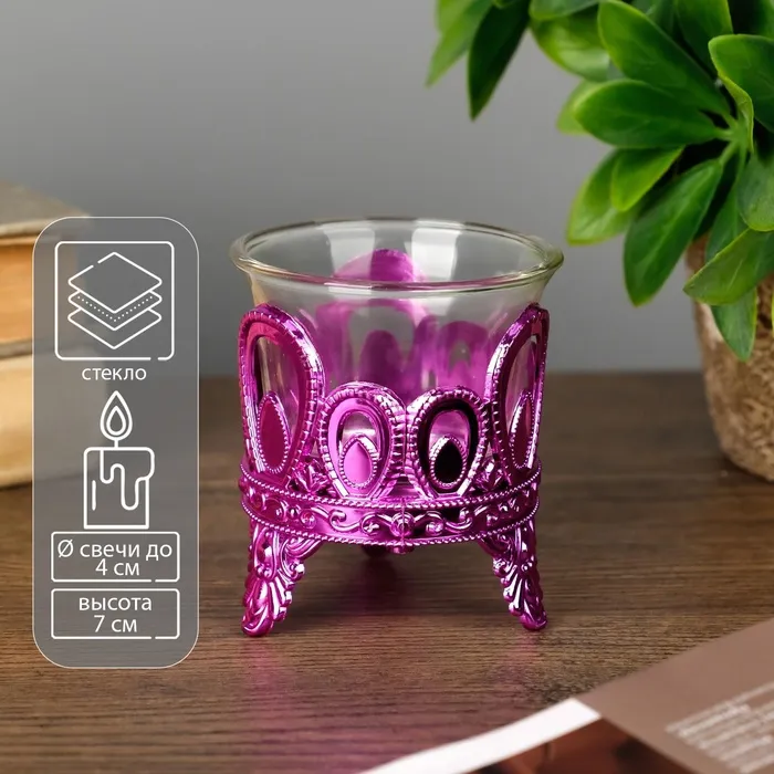 Подсвечник на 1 свечу «Капельки», пластик, стекло, розовый, 7×6×6 см — Характеристики