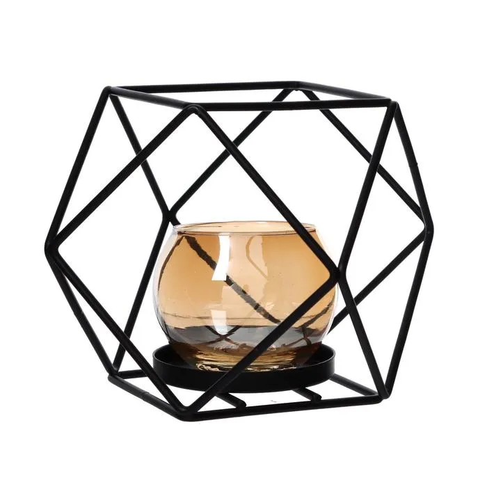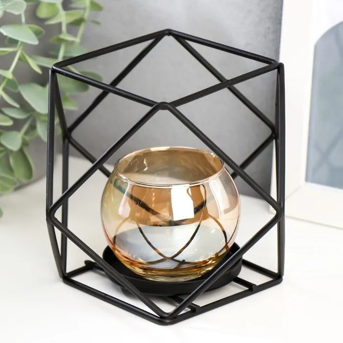 Подсвечник на 1 свечу «Квадраты и треугольники», металл, стекло, 10×15×15 см — Характеристики