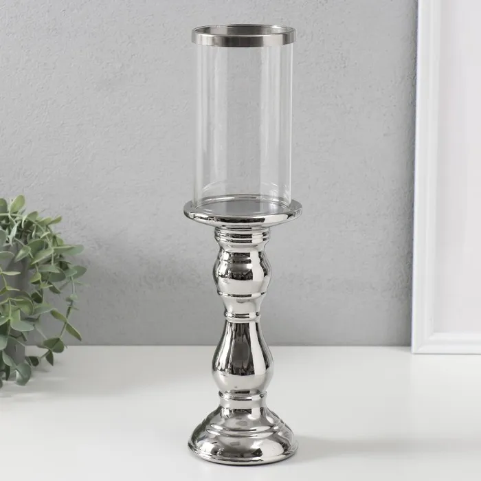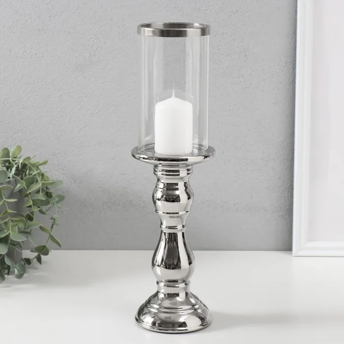 Подсвечник на 1 свечу «Лира», керамика, стекло, d=8 см, серебро, 9.3×9.3×34 см — Характеристики