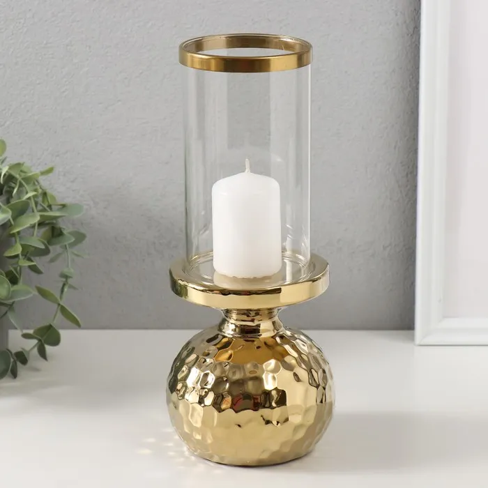 Подсвечник на 1 свечу «Лоджуар», керамика, стекло, d=8 см, золото, 10.5×10.5×26 см — Характеристики