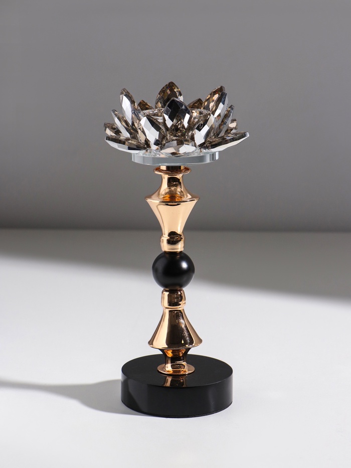 Подсвечник на 1 свечу «Лотос», чёрно-золотой, 8×8×22 см — Характеристики