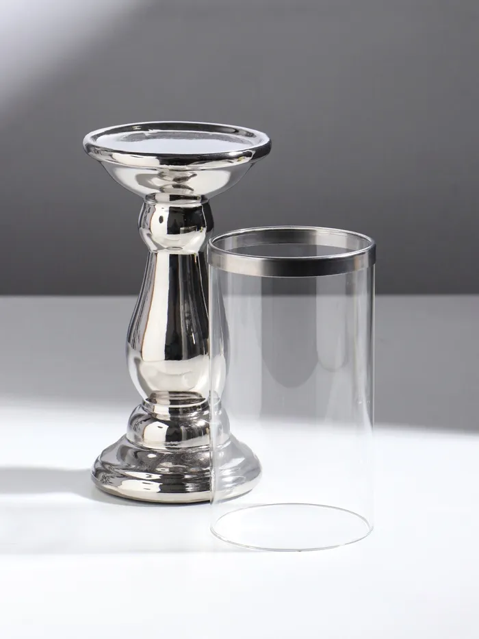 Подсвечник на 1 свечу «Магистр», керамика, стекло, d=8 см, серебро, 9.5×9.5×32 см — Характеристики