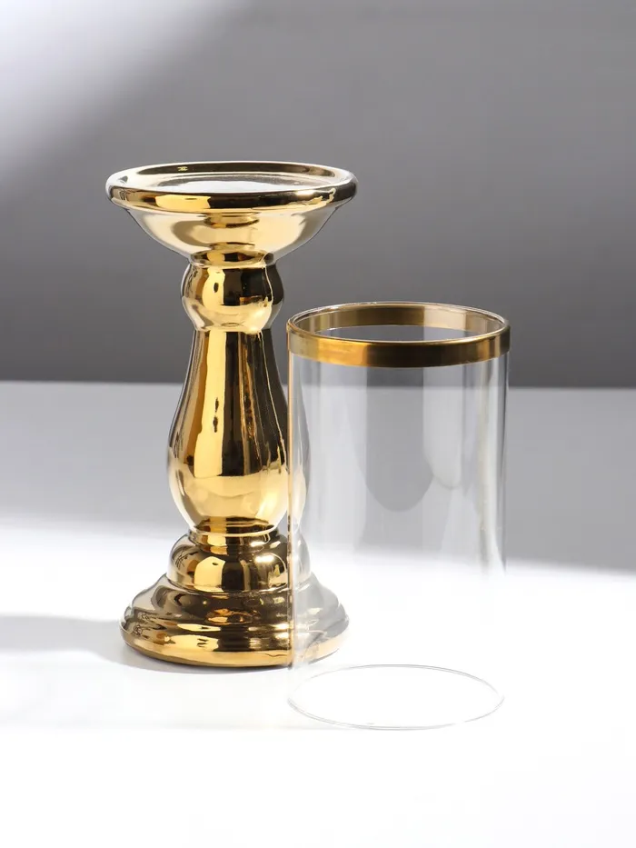 Подсвечник на 1 свечу «Магистр», керамика, стекло, d=8 см, золото, 9.5×9.5×32 см — Характеристики