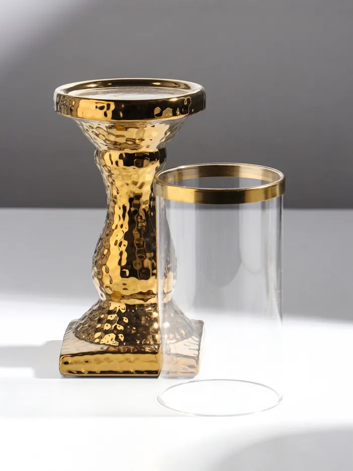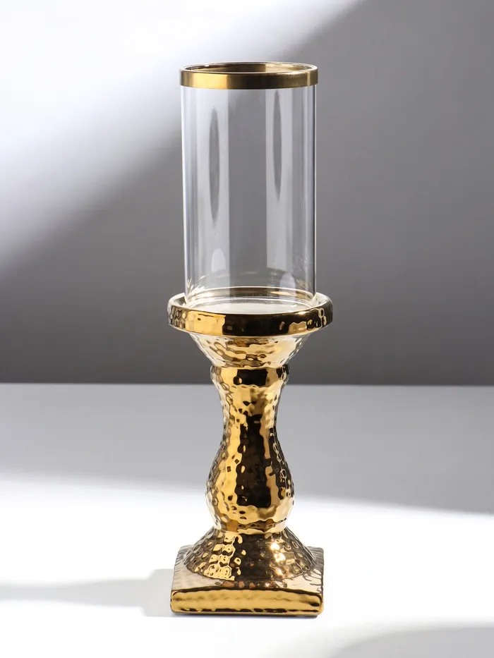 Подсвечник на 1 свечу «Монти», керамика, стекло, d=7.5 см, золото, 9×9×31.5 см — Характеристики