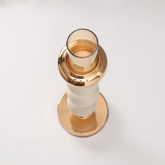 Подсвечник на 1 свечу «Нега», d=5 см, металл, пластик, беж с золотом, 10×10×29 см — Характеристики