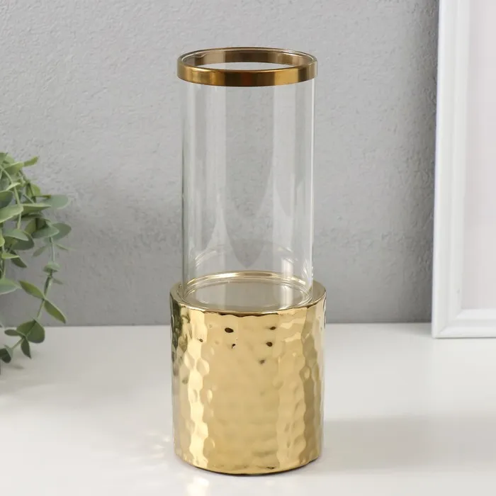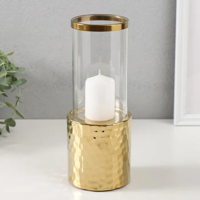 Подсвечник на 1 свечу «Нуар. Цилиндр», керамика, стекло, d=7.5 см, золото, 9×9×24 см — Характеристики