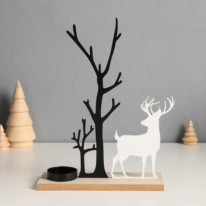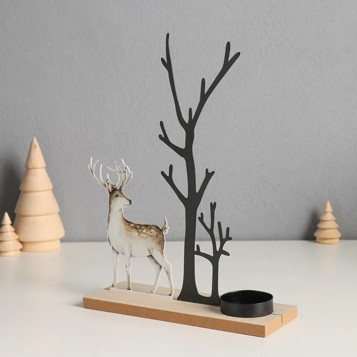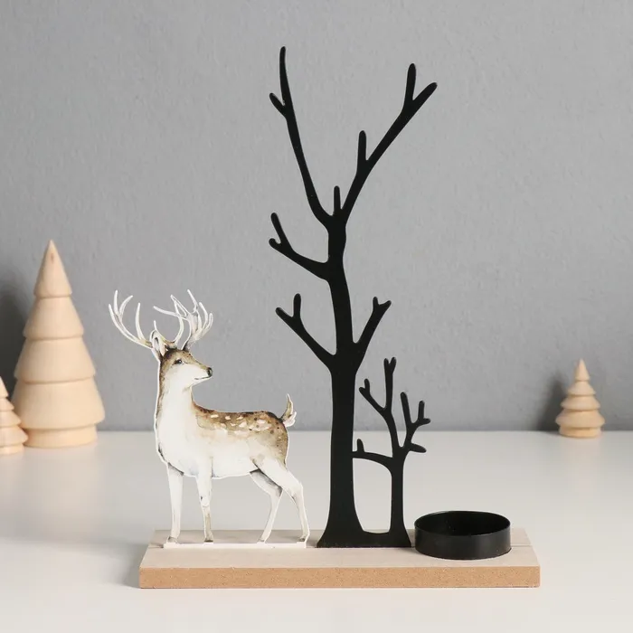 Подсвечник на 1 свечу «Олень у дерева», d=4 см, металл, дерево, 6×19×23.5 см — Характеристики