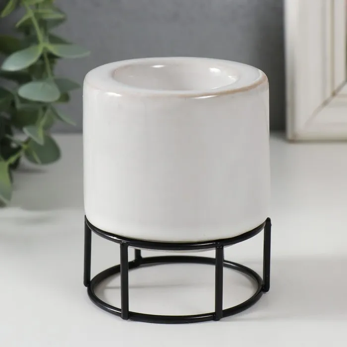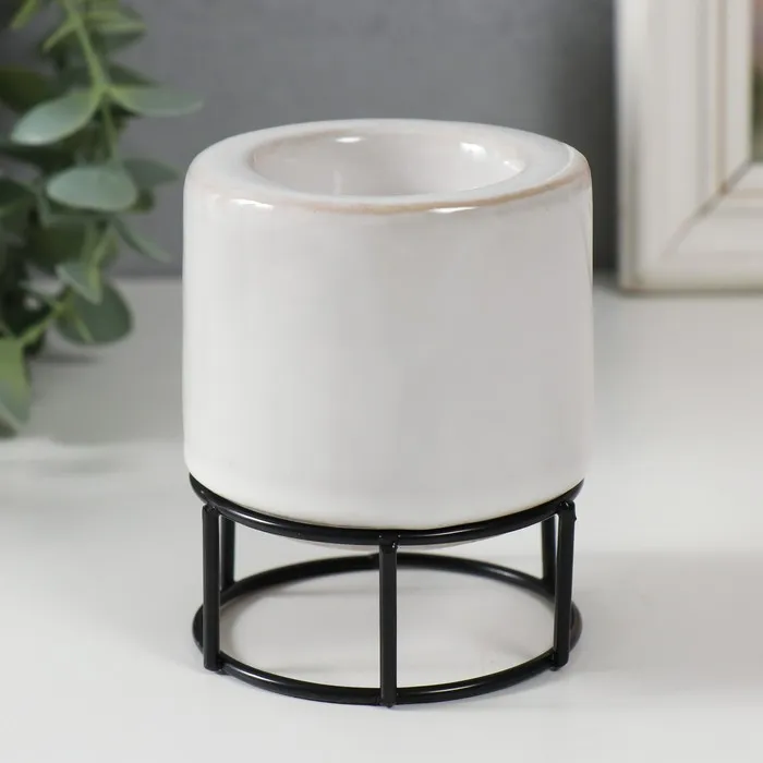 Подсвечник на 1 свечу «Пенёк», керамика, металл, белый с чёрным, 7.7×7.7×8.9 см — Характеристики