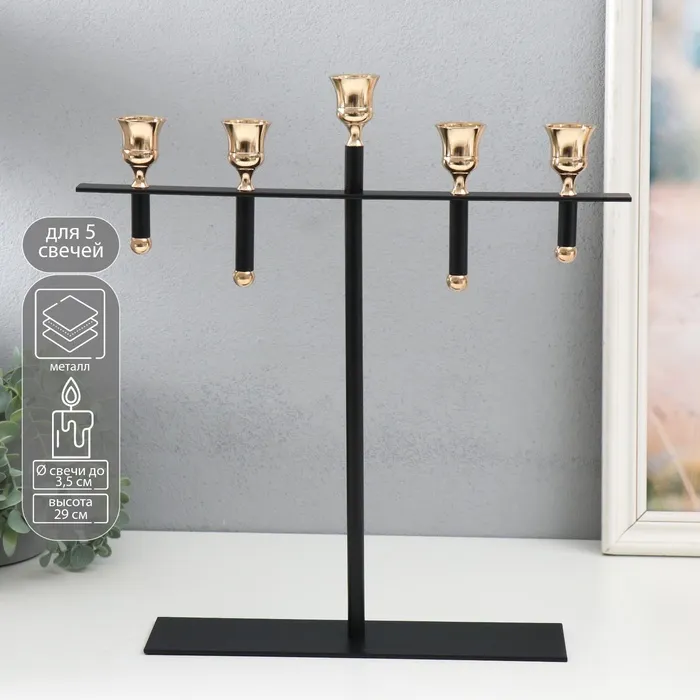 Металлический подсвечник на 5 свечей «Кельт», d=3.5 см, чёрный с золотом, 36×29 см