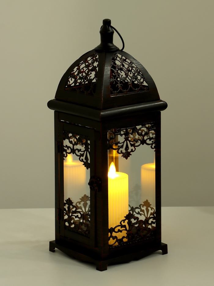 Металлический подсвечник-фонарь на 1 свечу «Стефано», 13.5×13.5×37.5 см
