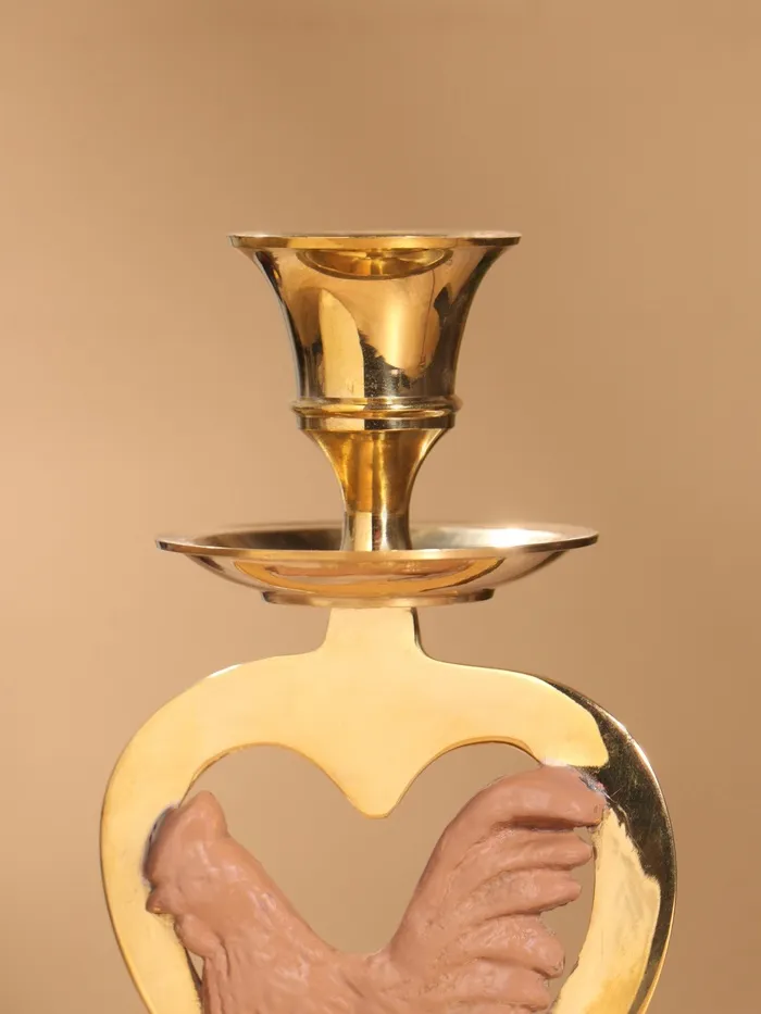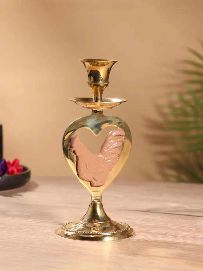 Подсвечник на 1 свечу «Петушок в сердце», латунь, коричневый с золотом, 7×8×16.5 см — Характеристики