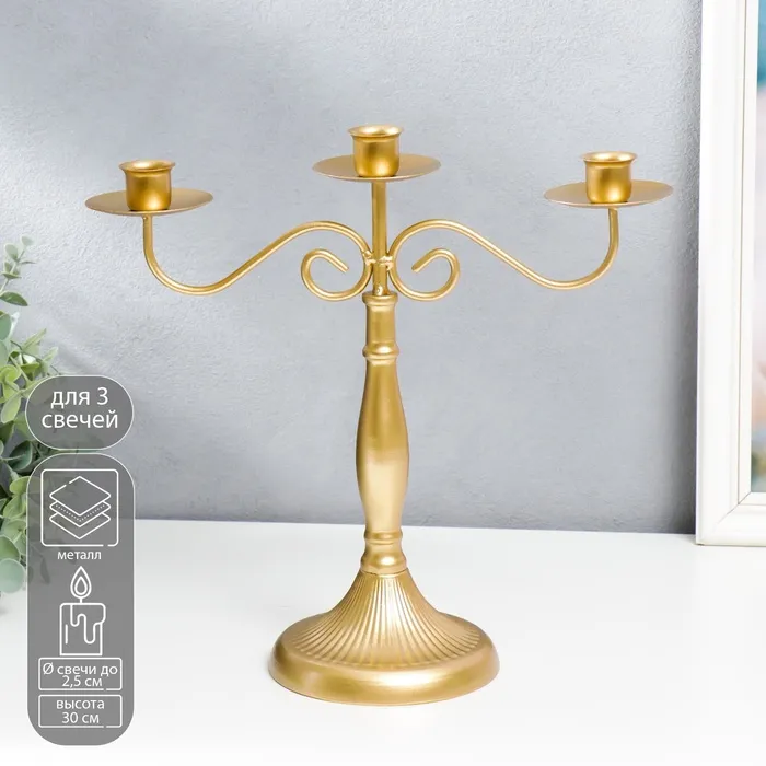 Металлический подсвечник на 3 свечи «Канделябр. Лаконичность», под латунь, 25.5×27×10 см