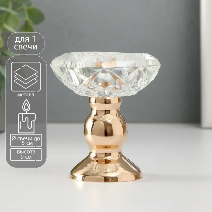 Подсвечник металл, стекло на 1 свечу «Кристальная чаша. Фигурный», d=5 см, золото, 8×8×9 см