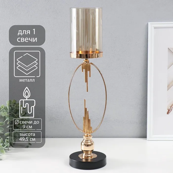 Подсвечник на 1 свечу «Корнелия», d=9 см, металл, стекло, 12×12×49.5 см