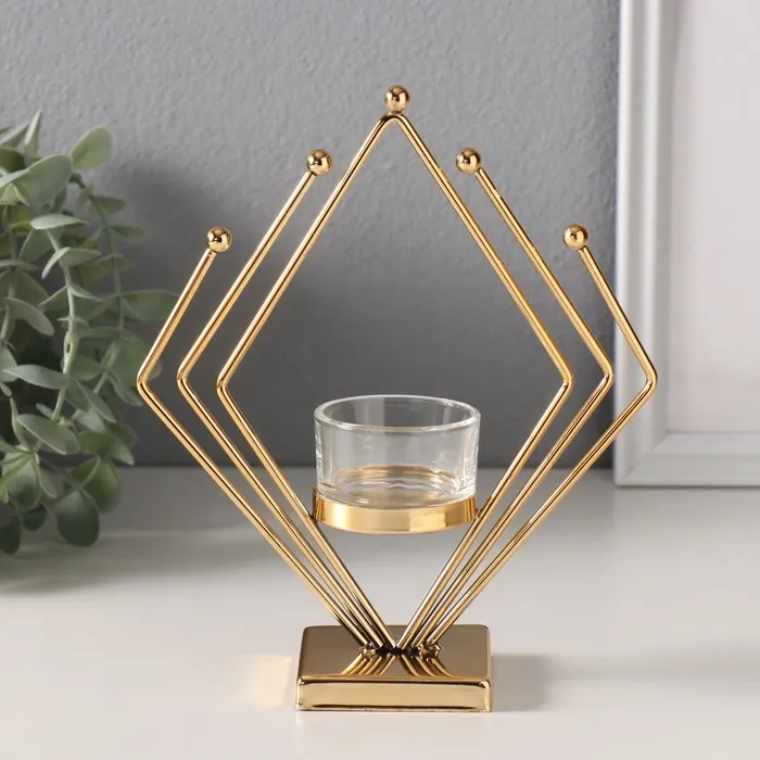 Подсвечник на 1 свечу «Золотой ромб», металл, стекло, d=4.5 см, 6×16×19 см