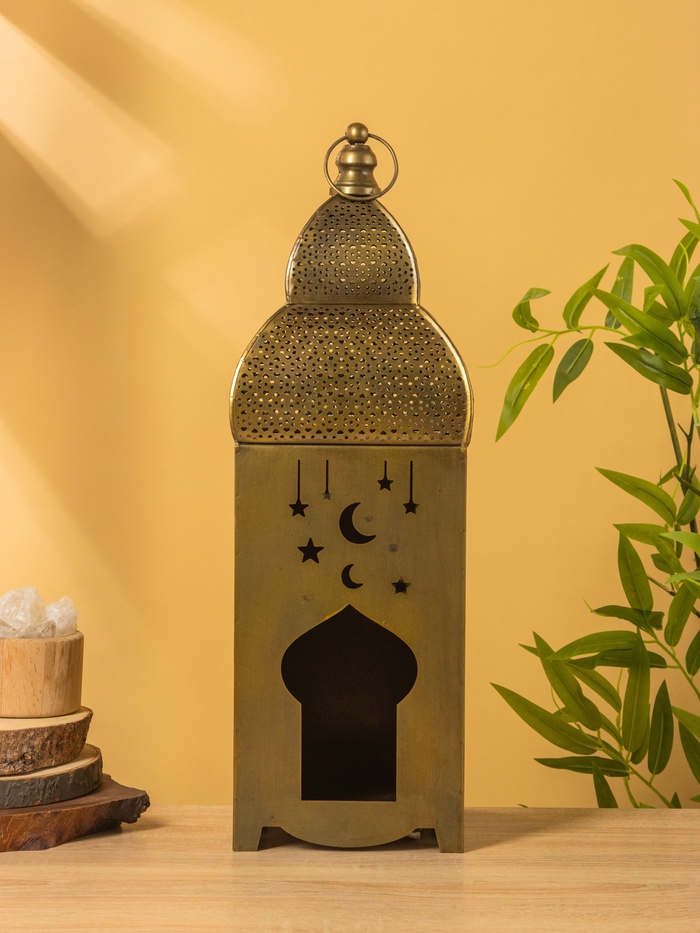 Подсвечник фонарь «Золотой полумесяц», 15×15×50.5 см, железо