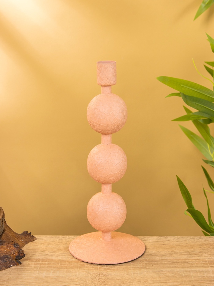 Подсвечник на 1 свечу «Пудровый», с 3 сферами, 10×10×25 см — Характеристики